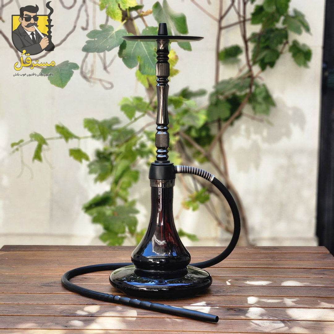 - تنگ قلیان شیشهای ضخیم و براق با رنگ مشکی فانتوم